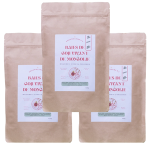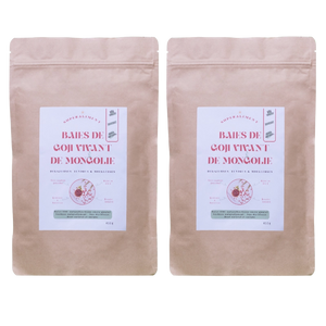 Loin des baies de goji traditionnelles, souvent sèches et sans saveur, nous vous proposons une véritable expérience gustative et sensorielle. Nos Baies de goji sont vivantes, une qualité rare qui se manifeste par leur texture exceptionnellement moelleuse et leur goût prononcé, rappelant un subtil mélange de canneberge et de cerise. Le secret de cette vitalité unique réside dans leur capacité à germer si vous les plantez, témoignage de leur fraîcheur et de la préservation de leurs propriétés. Cultivées en Mongolie, une terre d'origine authentique, elles sont ensuite conditionnées avec soin en Nouvelle-Aquitaine, garantissant un produit de la plus haute qualité.