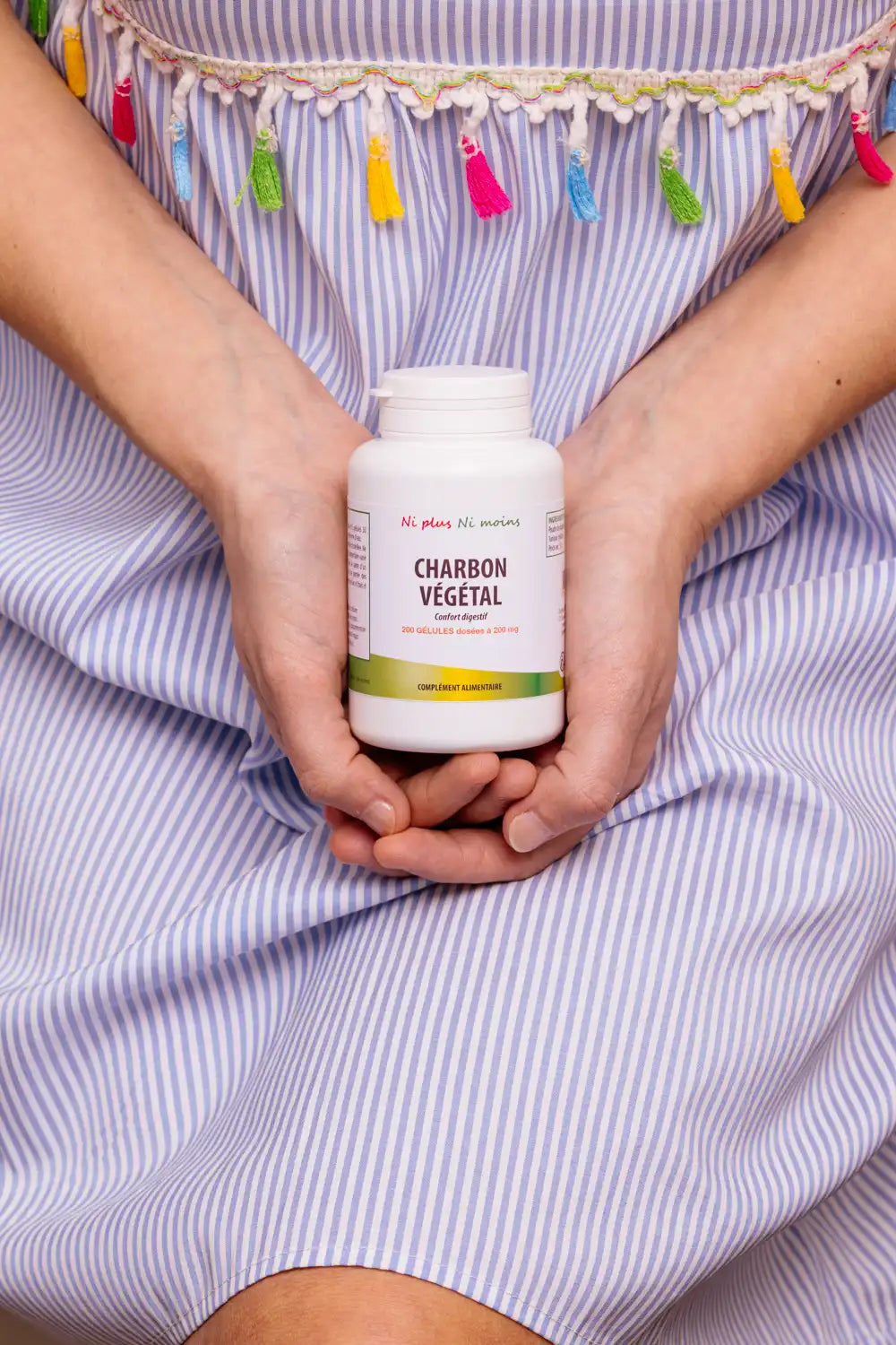 Chaque boîte contient 200 gélules, dosées à 200 mg de poudre de charbon végétal activé. Cette formulation a été pensée pour se conformer aux exigences de l'Autorité Européenne de Sécurité des Aliments (EFSA). Avec une posologie de 5 gélules avant le repas et 5 gélules après le repas, vous atteignez le dosage précis de 2 grammes par jour recommandé pour bénéficier de ses effets sur les gaz intestinaux. Fabriqué avec soin en Nouvelle-Aquitaine, notre produit est une garantie de qualité et de traçabilité, répondant aux attentes des consommateurs les plus exigeants.