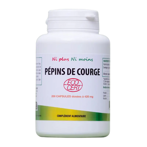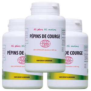 Notre huile de pépins de courge bio est extraite à froid pour préserver tous ses principes actifs, notamment ses précieux phytostérols et sa cucurbitine reconnue pour améliorer le confort urinaire.