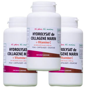 À partir de l'âge de 25 ans, la production naturelle de collagène par le corps commence à diminuer, une perte d'environ 1% par an qui s'accélère après 50 ans. Cette diminution progressive impacte la vitalité de la peau, qui perd en fermeté et en élasticité, ainsi que le confort articulaire et la souplesse des tissus. Pour contrer ce phénomène naturel, une supplémentation de qualité devient un allié de choix. Notre complément alimentaire associe l'hydrolysat de Collagène Marin, reconnu pour sa haute biodisponibilité, à la Vitamine C, le cofacteur indispensable à la synthèse du collagène. En effet, la vitamine C contribue à la formation normale de collagène pour assurer la fonction normale des os, des cartilages et de la peau.