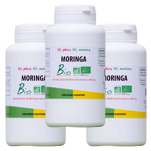 Le Moringa oleifera est un arbre originaire d'Inde, surnommé « arbre de vie » en raison de sa richesse nutritionnelle exceptionnelle. Ses feuilles sont une source concentrée de vitamines, minéraux et protéines, traditionnellement utilisées pour soutenir le bien-être général. Ce complément de Moringa Bio en gélules végétales(400 mg) permet de profiter facilement des bienfaits de cette plante au quotidien.