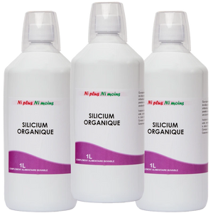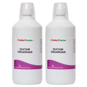 Le Silicium organique 1L est un complément alimentaire liquide formulé à base d’acide orthosilicique stabilisé par choline (30 mg, dont 20 mg de silicium, par dose de 15 ml). Cette forme hautement biodisponible de silicium organique permet une absorption optimale par l’organisme.