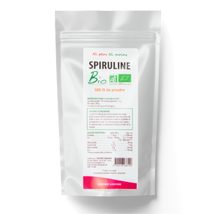 Cette spiruline alimentaire, certifiée bio, vous apporte également un complexe vitaminique naturel complet (provitamine A, vitamines B, E, K) et des acides gras essentiels oméga-6.