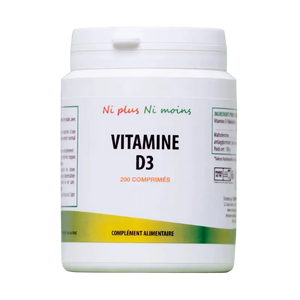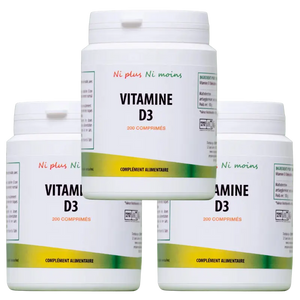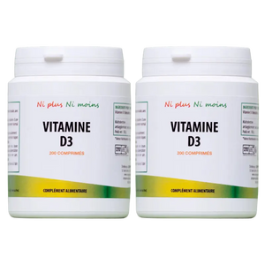 Avec notre Vitamine D3, vous avez une solution pratique pour assurer un apport quotidien régulier et prévenir ces insuffisances. 200 comprimés = plus de 6 mois de cure : un excellent rapport qualité-prix qui vous garantit vitalité sur la durée. Il suffit d’1 comprimé chaque matin, de préférence avec un grand verre d’eau, pour faire le plein de vitamine D3 en toute simplicité.